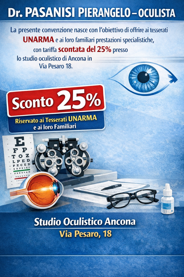 Il Dr. PASANISI PIERANGELO – Oculista è lieto di annunciare una convenzione dedicata ai tesserati UNARMA e ai loro familiari.